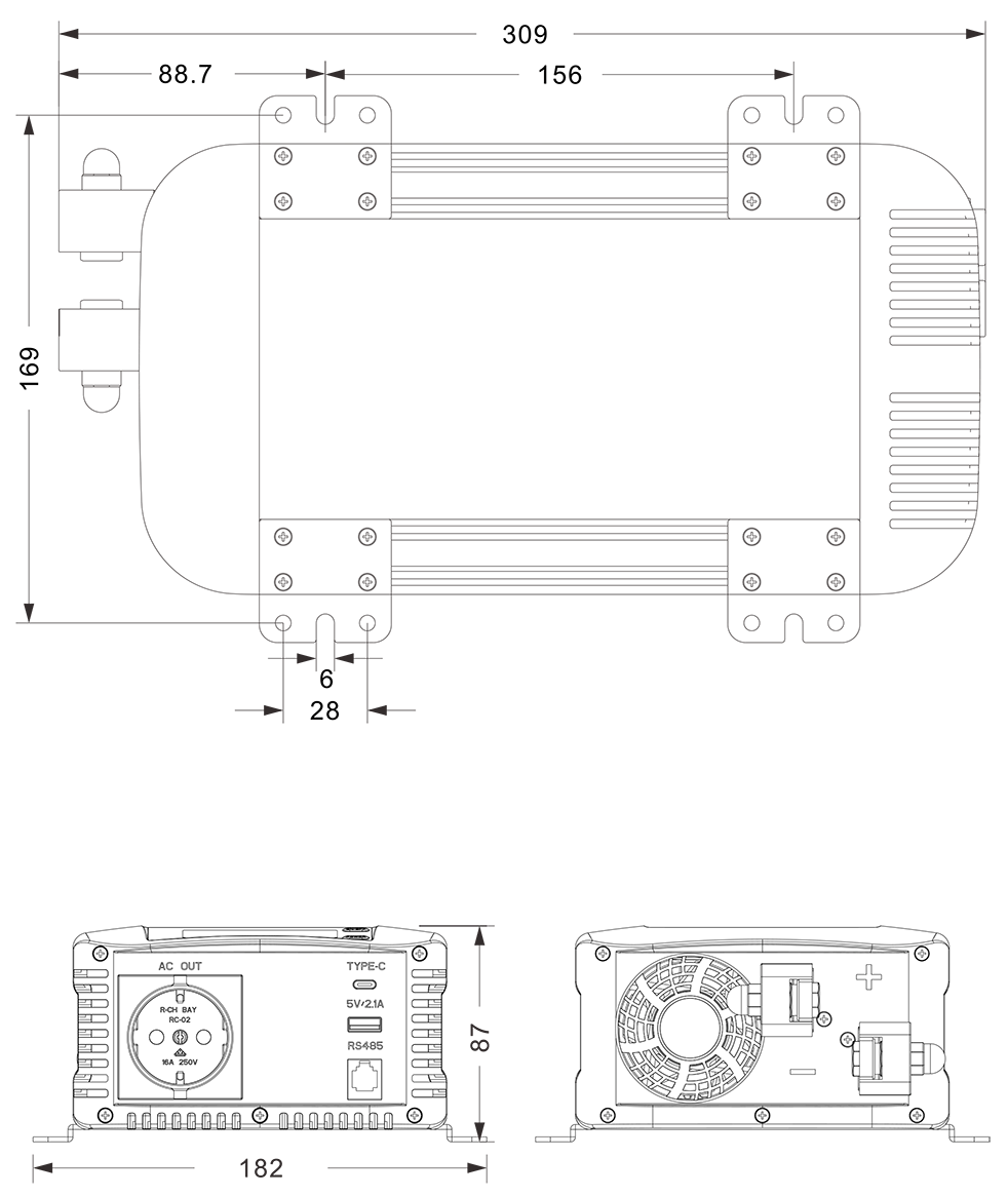 Механические чертежи: (309x182x87 мм)