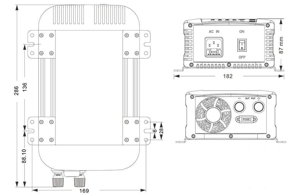 Механические чертежи: (286×182×87 мм)