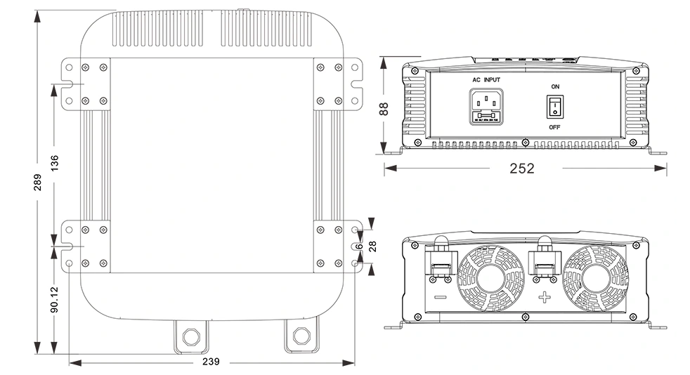 ●Универсальный вход переменного тока 90–140 В/1 80–260 В.
