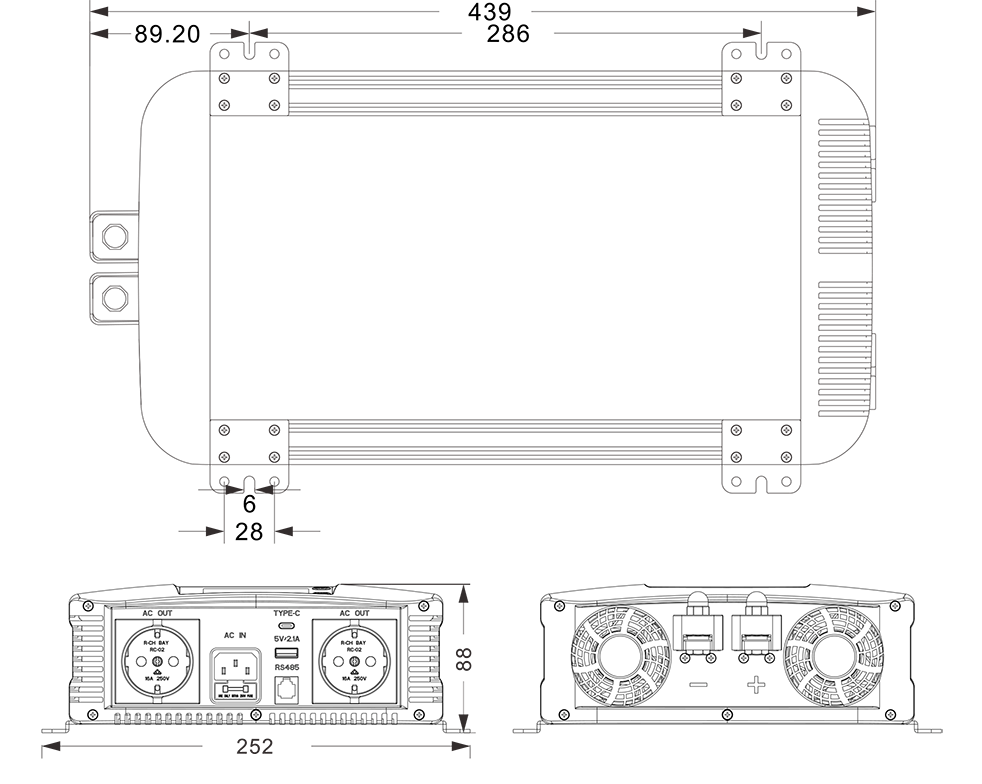 • Инвертор чистой синусоиды мощностью 2500 Вт с зарядным устройством HK2500PCИнвертор чистой синусоиды мощностью 2500 Вт с зарядным устройством HK2500PC
