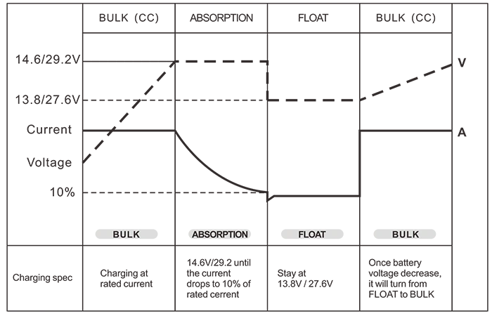 Управление аккумулятором (3-ступенчатые зарядные устройства) Объем/поглощение/поплавок