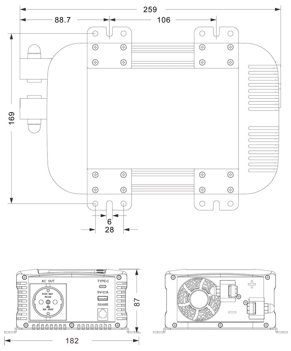 Механические чертежи: (259x182x87 мм)